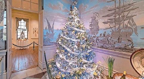 Winterthur explores Christmas traditions from the 1800s to the early 20th century, including displays of the earliest types of colorful lights decorating house exteriors, a full-room scene of Clement Moore’s “A Visit from St. Nicholas,” the du Pont family’s holiday celebrations, and the evolution of Christmas trees from the 1880s to the 1960s. In celebration of the exhibit “Royal Splendor: The Coronation Gown from ‘The Crown,’” which showcases the coronation gown worn on the popular Netflix series “The Crown,” the Yuletide Tour will recreate trees enjoyed by Queen Victoria’s family at Windsor Castle, inspired by a painting depicting the queen’s celebration in 1851. Younger visitors will linger over the 18-room dollhouse mansion created by designer and