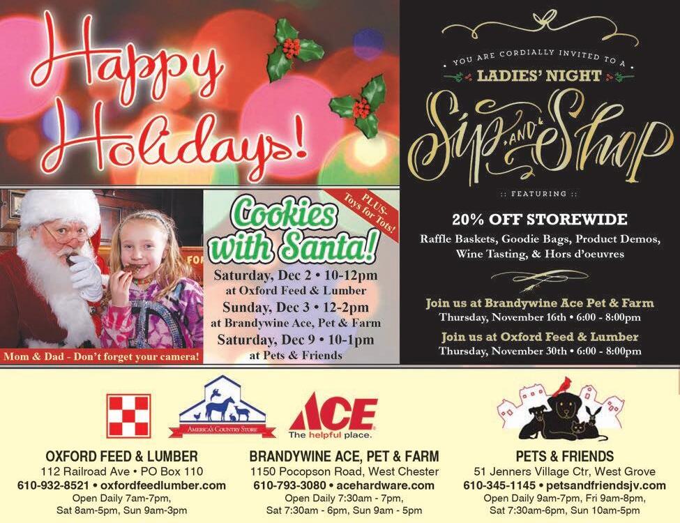 Santa Claus is taking time out of his busy schedule to make an appearance at Oxford’s Country Christmas event. A fire truck will escort Santa to the Coatesville Savings Bank, where he will pose for pictures with children starting at 5:30 p.m.