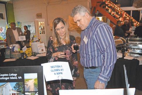 Photo by Richard L. Gaw Leon and Luchelle Erasmus mull over a potential silent bid at the 9th annual Holiday Auction for the Garage Community & Youth Center, held Dec. 8 in Kennett Square.