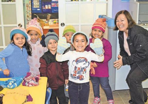 Courtesy photo The holiday season got off to an early start for the children at the Tick Tock Early Learning Center when Melinda Hardie dropped off 108 pairs of hand-knit mittens and an equal number of hats—one set for each child at the center.