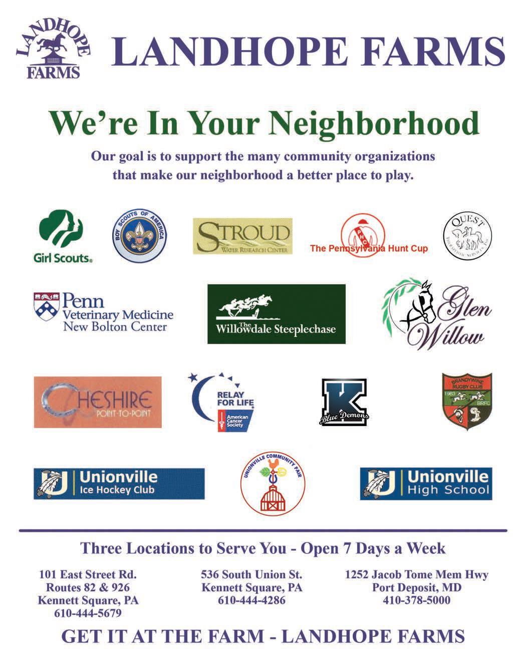 Notice the tag line “Embracing all of Southern Chester County” on the cover and in various publicity items. We want all our neighbors throughout the Kennett, Avon Grove, Oxford and Octorara communities to join in the fun with our Unionville Chadds Ford community to celebrate this milestone and the Agricultural history of the area that is Southern Chester County.