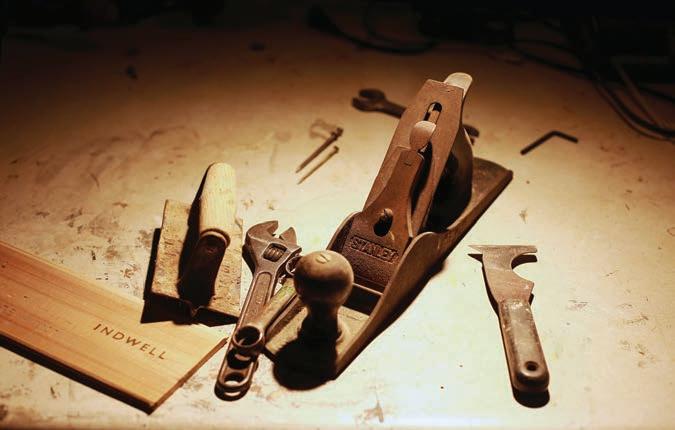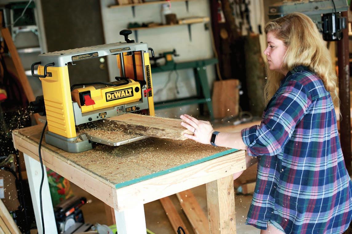 On one wall, the tools of past generations hang in tribute to those who loved the symmetry and balance of hands, wood and machinery. Bailey guides a wide plank of wood through her planer repeatedly, and over time, the surface has gone from the consistency of sandpaper to that of glass.