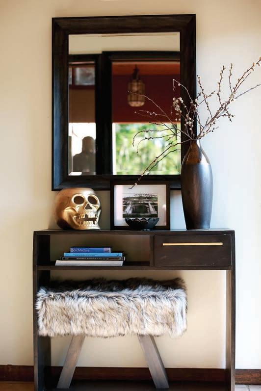 “Sometimes I see things immediately, such as a fallen tree I come across when walking the dogs, and I’ll think that it could become something very cool,” Bailey said, pointing to a narrow table in her home that was made from discarded joists taken from a historic Philadelphia home. “Other times, it takes a while. After I received the joists, they sat for a bit, but then I looked at my sofa and thought that it would be convenient to fashion a slender table using these joists, and place it behind the sofa.”