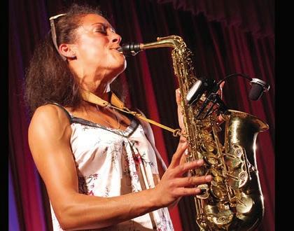 Primarily a saxophone player, she can also play clarinet, flute, organ and percussion. In the many videos on YouTube of Collier leading her band, she is unfailingly a magnetic stage presence, belting out her originals and classics such as a reinterpreted
