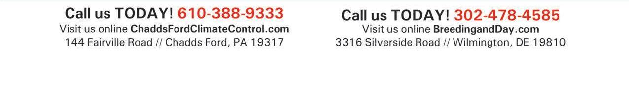 We hope you enjoy the stories in this issue of West Chester & Chadds Ford Life as much as we enjoyed working on them. We always welcome your comments and suggestions for stories to pursue for upcoming issues of the magazine. The next issue of West Chester & Chadds Ford Life will arrive in the spring of 2020.