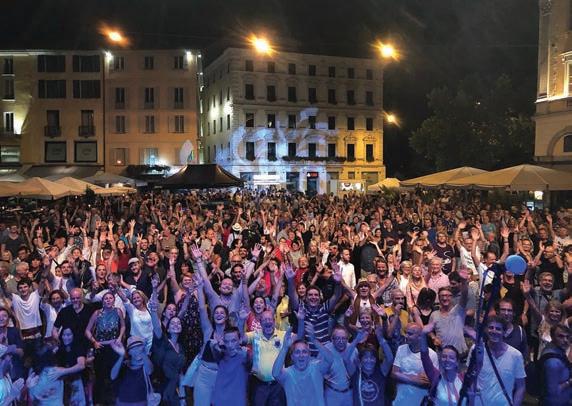 A photo from the stage shows Collier’s audience in Lugano, Switzerland.