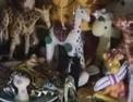 Piles of reclaimed wood planks, beams and discarded items Bailey finds are fashioned into household furniture.