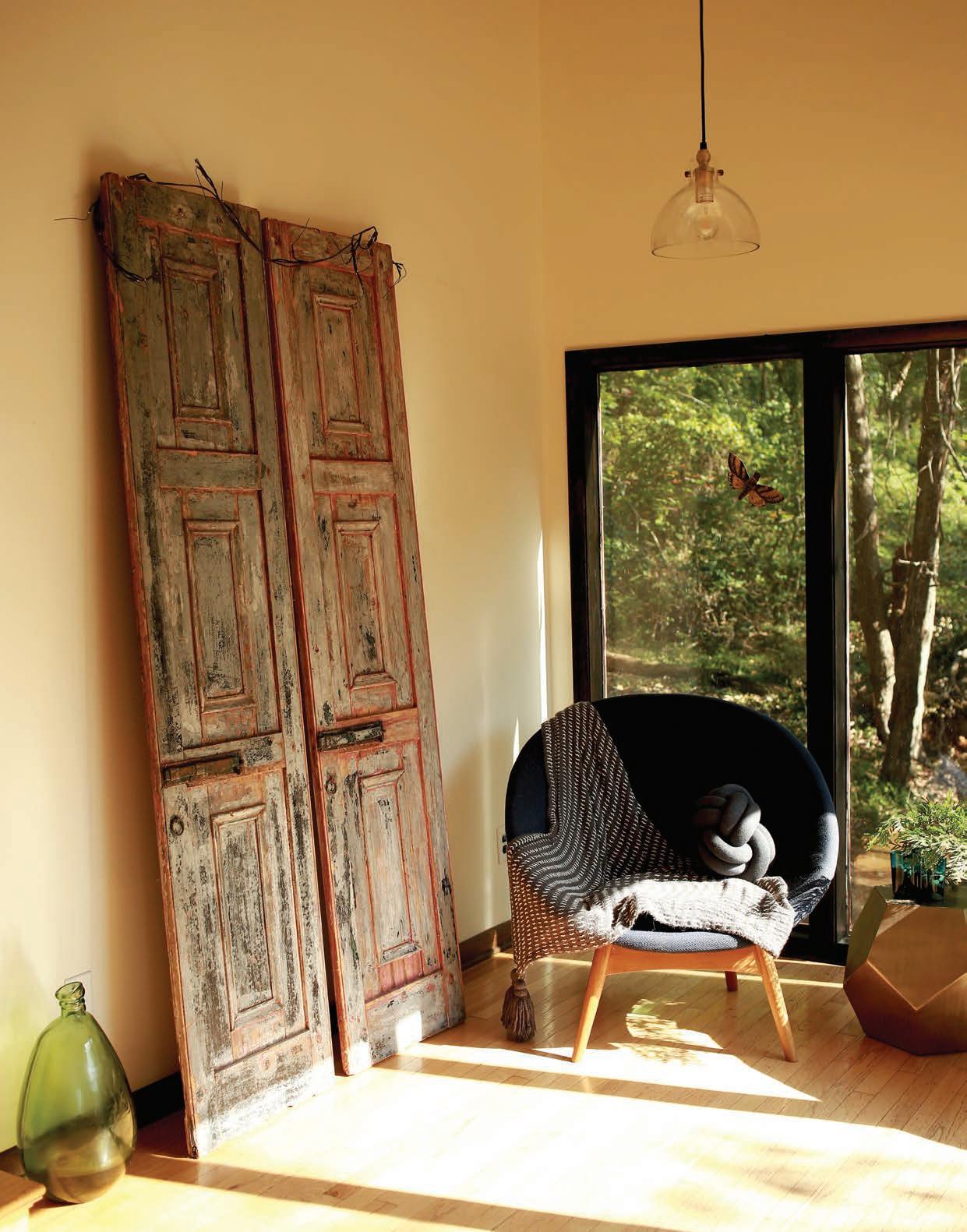 “A client of mine asked if I could create a sliding door for her,” Bailey said. “I went to an antique store the following weekend, where I began texting her photos of what I was finding. First, I came across a few rustic barn doors, but then I found an old glass door. She loved it, so I took it home, distressed it and frosted it, and it turned out very nice.”