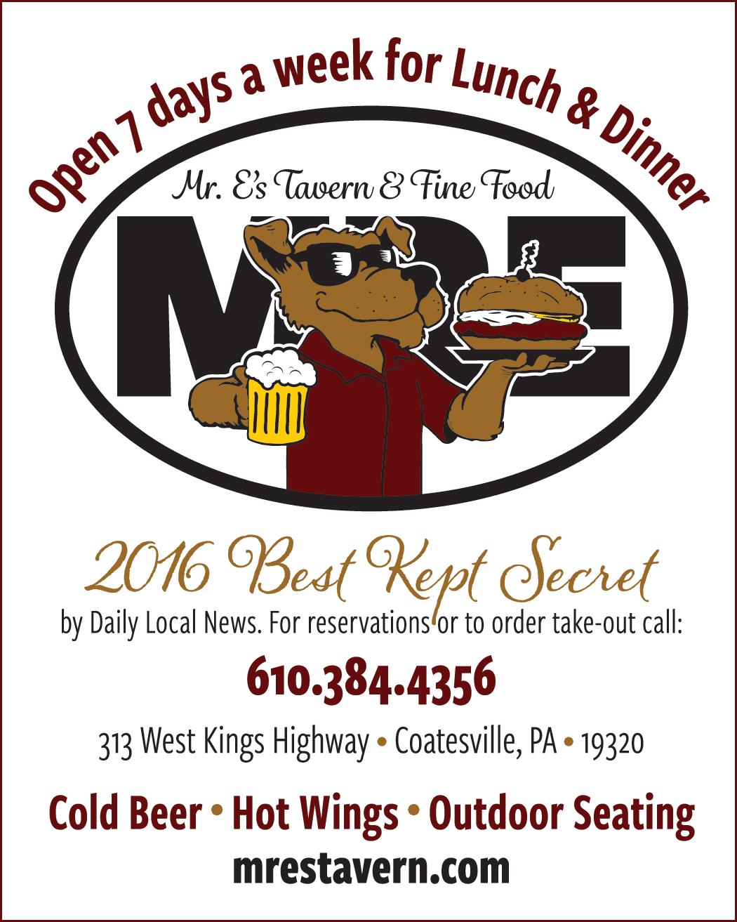 Mr. E’s Tavern & Fine Food (610) 384-4356 www.mrestavern.biz