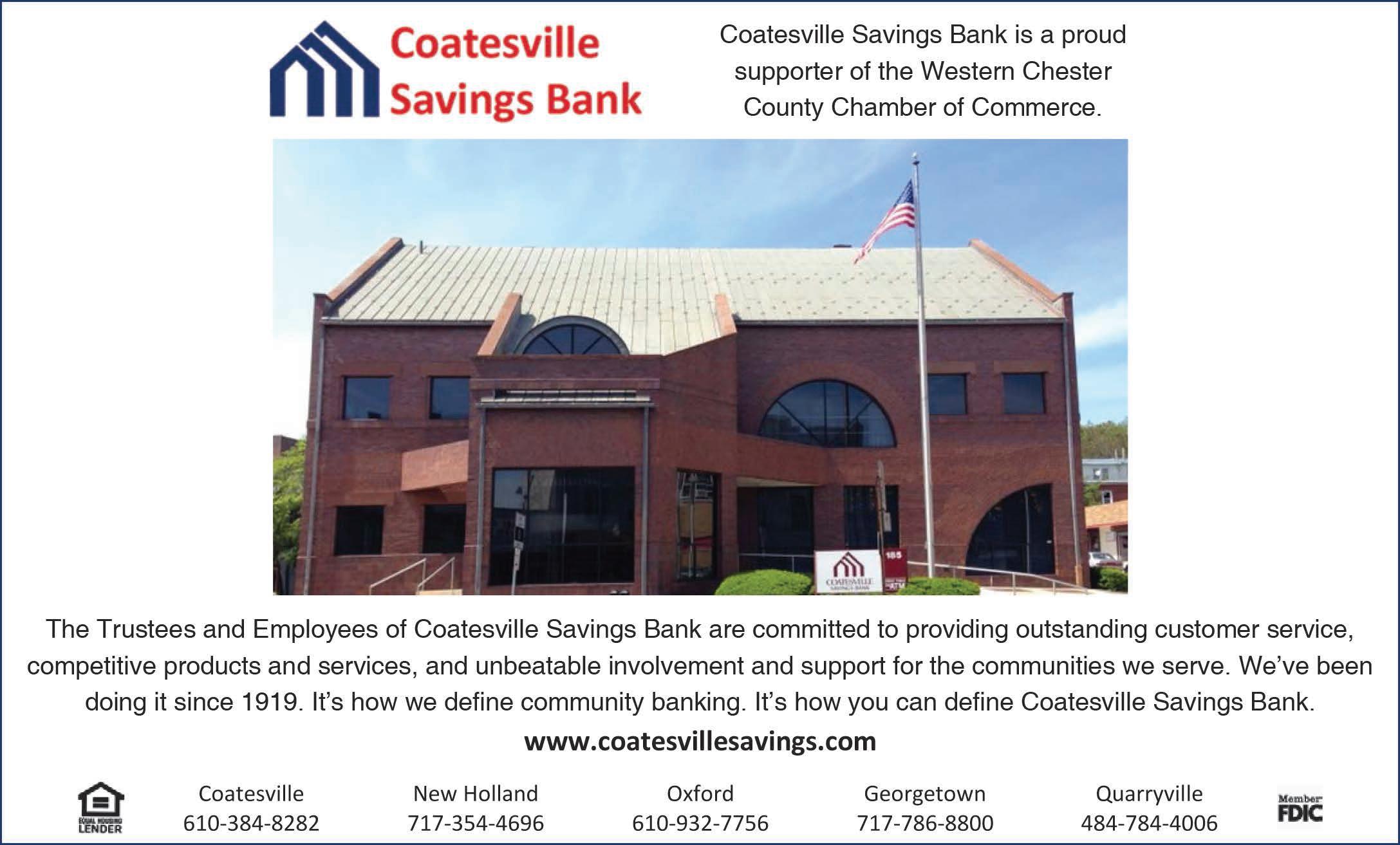 Remember, the chamber is here to support Western Chester County, its businesses and citizens. If you have questions, please contact the Chamber at 610-384-9550, or stop by during business hours at the Lukens Executive building, 50 S. First Avenue, Coatesville, PA 19320.