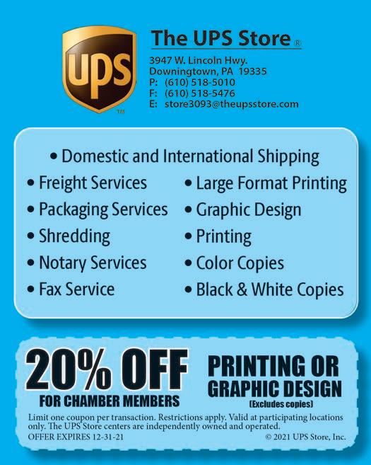 As a longtime business owner in Western Chester County, I am so excited to see the redevelopment in the City of Coatesville happening now. In our Chamber, we have taken a regional position serving 23 municipalities and the City of Coatesville and have provided unprecedented opportunities to connect with prospective clients and business peers. As a longawaited sense of normalcy will return this coming year, I encourage everyone to support the local economy by shopping local and, of course, patronizing your fellow Chamber businesses.