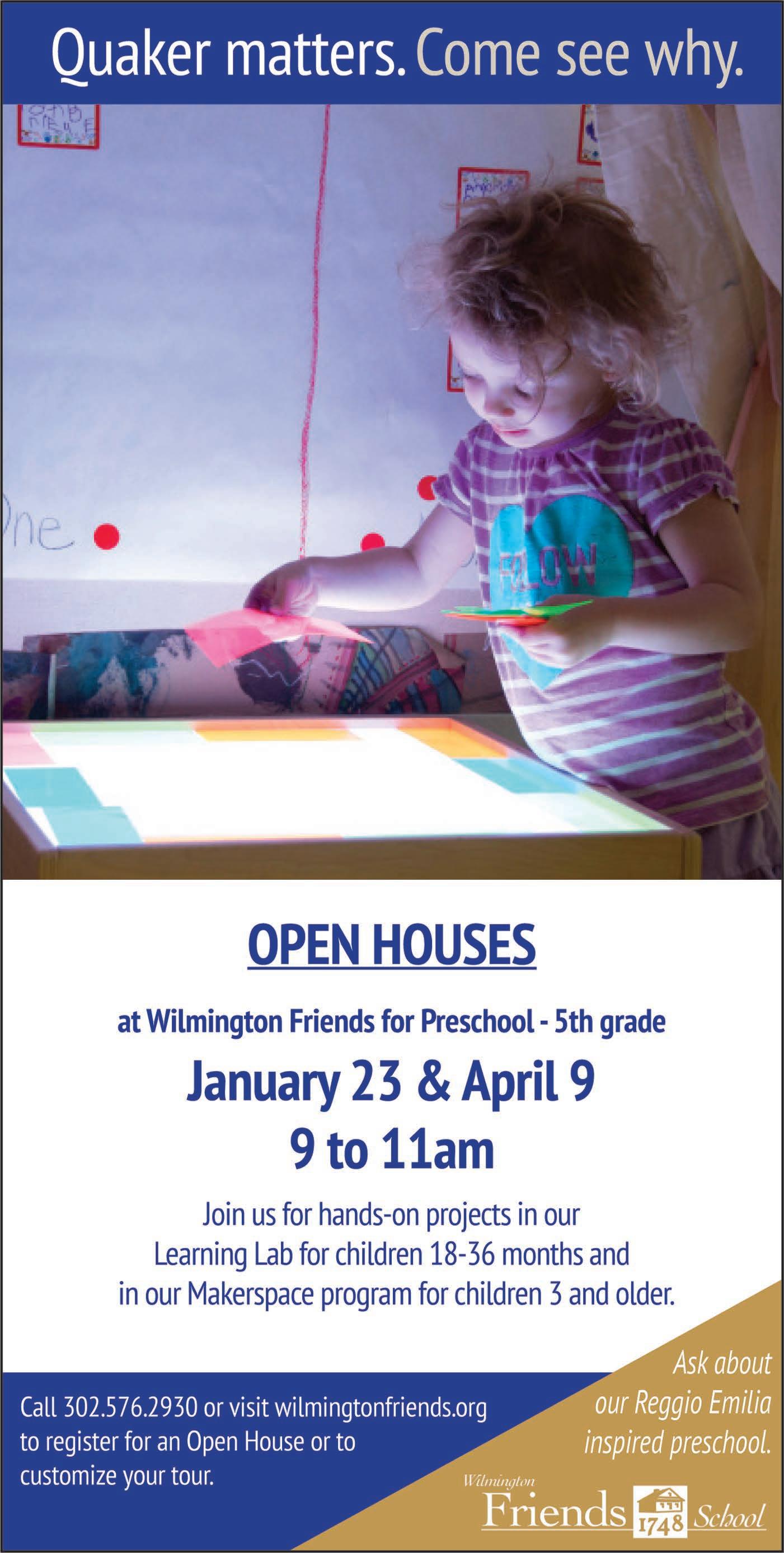 Visit www.wilmingtonfriends.org or call 302-576-2930 to customize your tour or to register for an Open House.