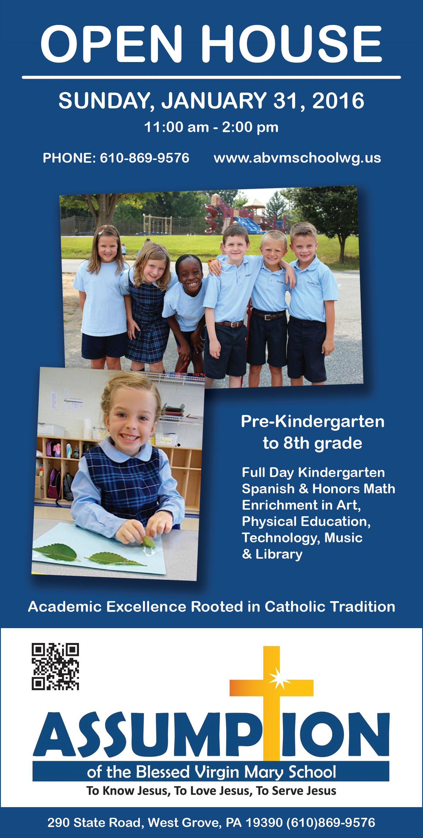 During Catholic Schools Week, Assumption of the Blessed Virgin Mary School invites the community to see the value of this hidden gem at our Open House and Registration on Sunday, Jan. 31 from 11 a.m. to 2 p.m. Located at 290 State Road in West Grove,