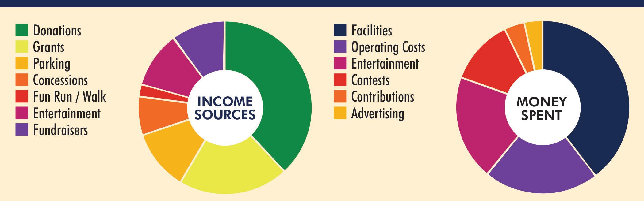 The 3 biggest sources of income are the donations from Sponsors and patrons and the concessions (craft & food vendors).