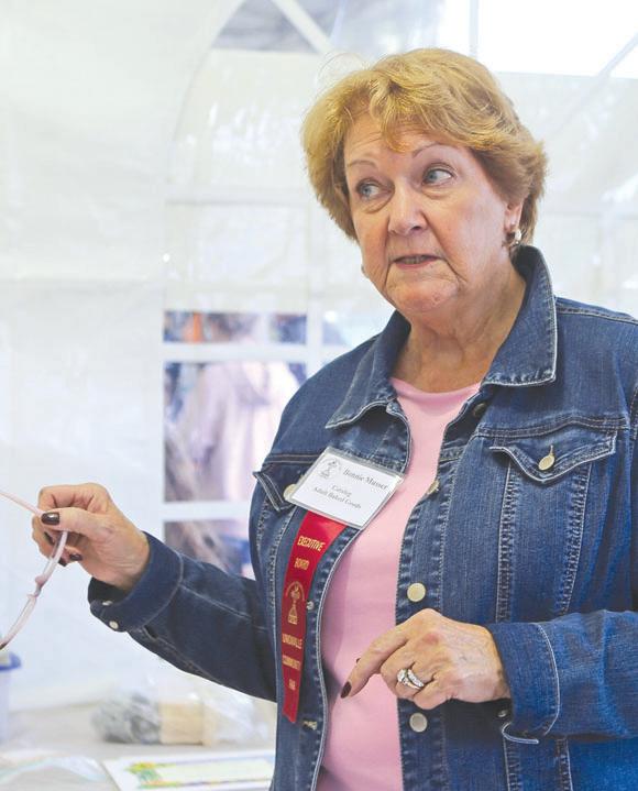 She said she loves to look at the exhibits and admires the skills of the artists. She is especially impressed with the artistic work of the local children and the adult needlework entries. She likes the farm crops and produce on display as well.