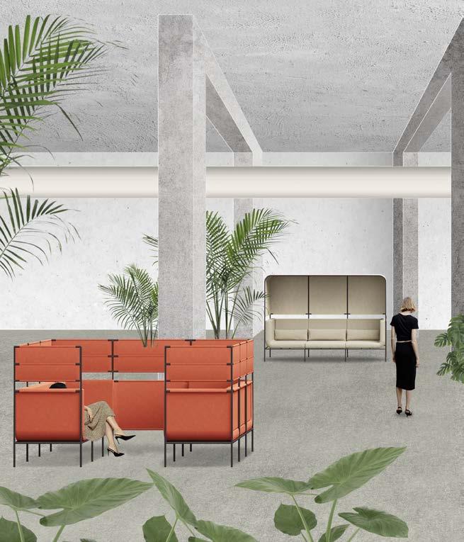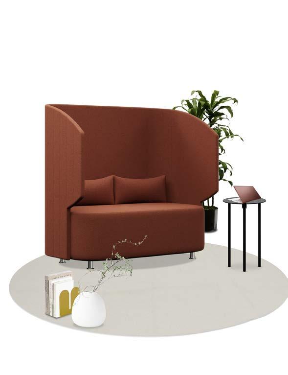 La sua forma particolarmente avvolgente e le pareti insonorizzate la rendono attraente per le aree waiting di spazi pubblici.