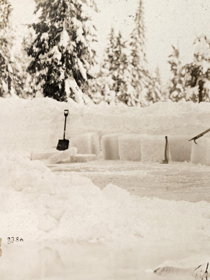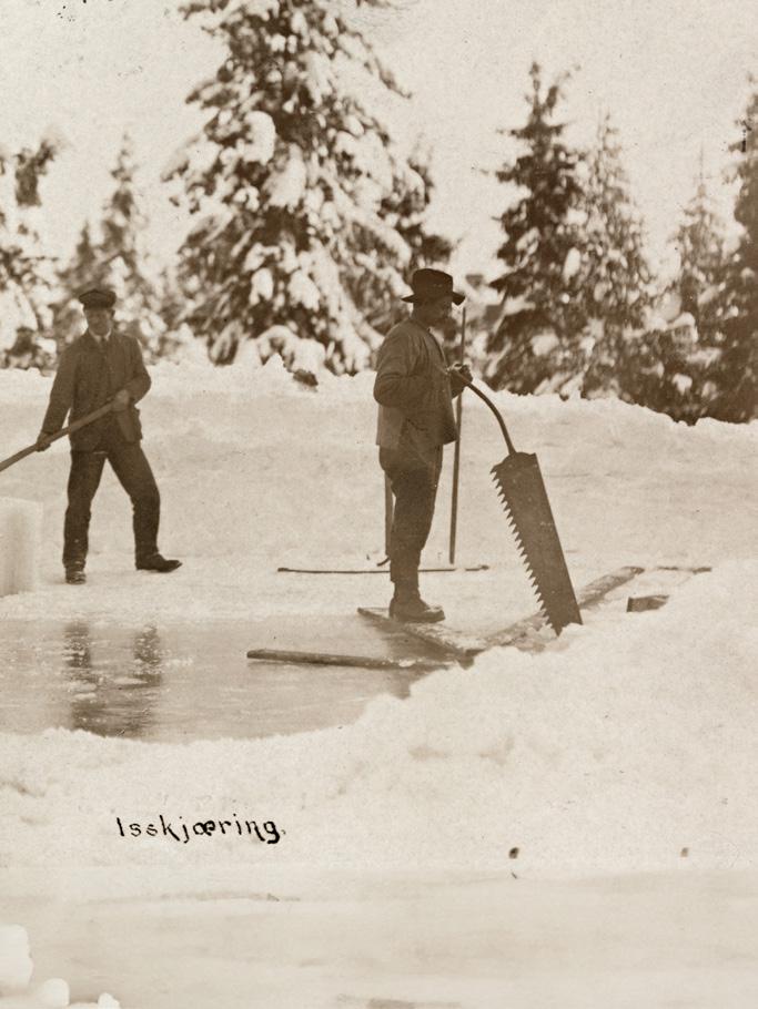 Jeg husker selv ishuset; det hadde tykke vegger og erindrer at det var isolert med sagflis. Det var viktig at isen holdt seg så lenge som mulig utover våren og sommeren. Ishuset kan sees på bildet til høyre for bryggebygningen. En dieseltank sees bortenfor ishuset, og det lille bygget bak tanken