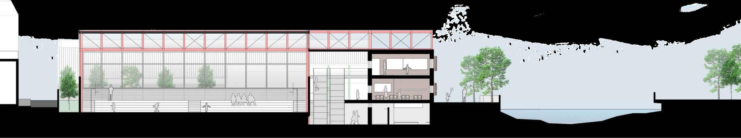 Se dispone el aulario paralelo al rio Mendo, las aulas se separan para permitir la entrada de luz y la conexión con el rio.