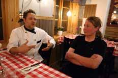 – Men fjällfisk finns inte på menyn. Det är ingen som vill äta det här. Gästerna frågar efter pizza eller pasta. Det gäller att planera inköpen, tre-fyra gånger per år byter vi matsedel. Vi har 38 platser och så har vi puben på nedervåningen. Den får vi stänga ibland för vi hinner inte med. I somras hade vi 150-200 gäster varje dag, det går upp och ner, men det går runt, säger Petra. Hon får översätta åt Umberto när svenskan tryter.