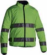 Quiltfodrad med två framfickor med dragkedja. Starkt vattenavvisande. Yttertyg med stretch. Jackan kan bäras som varseljacka eller som svart jacka där bägge sidor är utrustade med fickor. EN ISO 20471 klass 3. 100% polyester. XS-3XL. Gul/svart, orange/svart.