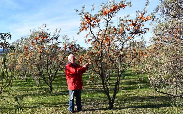 Bertil Jakobsons havtornsträdgård i Tåsjö. Här odlas både för egna produkter men också för självplockning.