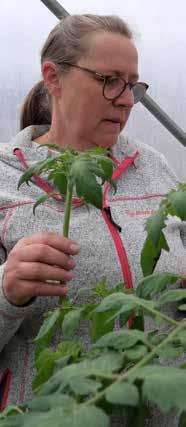 – I Växthuset finns det 64 sorters tomater och det är jobb hela tiden för att ta hand om tjuvskotten på alla plantor, berättar Susanne Johansson, som medger att maken Roger också får rycka in.
