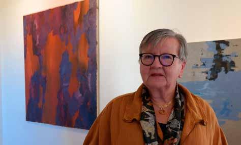 Margareta Vestman Grundström framför några bilder av Karl-Erik Jonas Jamtås.
