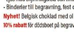 60 Ramsele Rep & Mek AB Blomsterrosetten Gravlyktor, kransar och ljus • Ljus med skymningsrelä och timer 4/8 h, även flerdygnsljus 110 h och 50 h. • Binderier till begravning, fest och bröllop Nyhet! Belgisk choklad med olika smaker, utan palmolja. 10% rabatt för dödsboet på begravningsbinderi vid direktbeställning hos oss. Tingsv 2 Ramsele • 0623-101 15 Ombud för Interflora och Euroflorist Mån-fre 9.30-17. Lunch 12.30-13.30. Lör 9-13 Boka ert sällskap från den 2/12 t.o.m. 16/12. Julbord för allmänheten 2/12 samt under Kajsa Kavat 9/12. För bokning, ring 010-476 77 55. Välkommen! Julbord 365:Jultallrik inkl. småvarmt 250:Julbord Vi dukar upp ett traditionellt, hemlagat