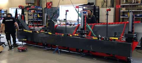En plog som sätts ihop har minst 500 olika detaljer som ska monteras. Här görs hydrauliska plogar. När vintern kommer kan det bli bråttom att serva med reservdelar –särskilt där det krävs ”svart asfalt”, söderut finns det gott om trottoarkanter och andra hinder.