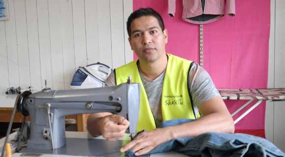 Kyrkan har anställt en flykting som går på nystartsjobb och här i lokalen har vi en skräddare, berättar Mårten Jonsson.