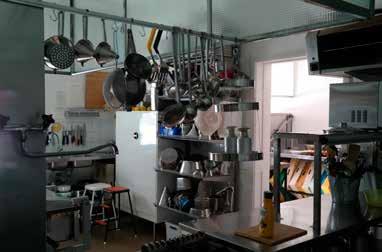 innehåller ett fullständigt restaurangkök och det är där all frukost intas.