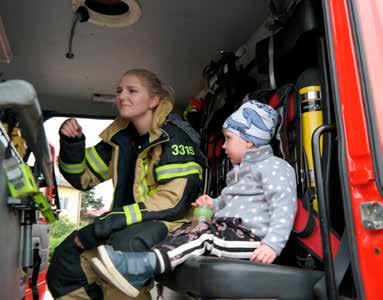 Räddningstjänsten i Backe med Katrin Pamp visade brandbilar för många intresserade små som Lisa.
