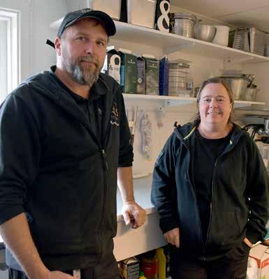 brässerad i BBQ-sås är en annan efterfrågad rätt. Allt kött kommer från lokala uppfödare. Men vi har nästan aldrig kyckling för vi får inte tag i närodlat. Det är viktigt med ”relationsmat”. Vi har också alltid lax och då från Ångermanälven, säger Christer, som har varit en hängiven sportfiskare, men som inte hinner med det så mycket nu för tiden.