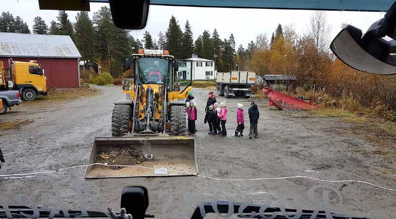 Åkeriet har också en hjullastare som svarar för snöröjning och sandning i byn, och den blev också föremål för barnens intresse och nyfikenhet.