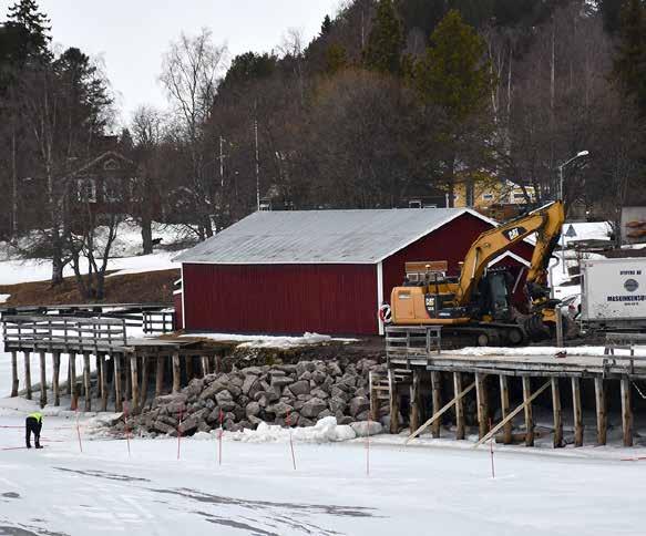 Strömsunds kommun har ansökt om 1,1 miljoner kronor från bygdemedel för att riva och bygga en ny brygga. Mark- och miljödomstolen har tillstyrkt en ansökan på 800 000 kronor till från Strömsunds kommun. På plats finns nu Janne Ottossons Åkeri som levererar stenblock som fyllning mot strandkanten.