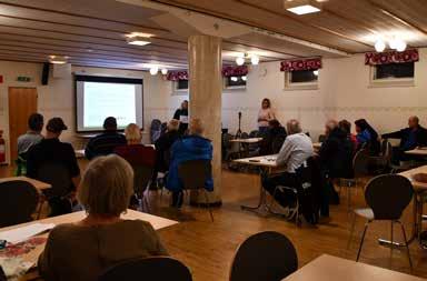 Hus i Rossön med coronasäkrat avstånd mellan deltagarna. På plats fanns vd:n för WPD Sverige, Vindkraftcentrum i Hammerdal och Sveaskog, en av markägarna på Bleka.