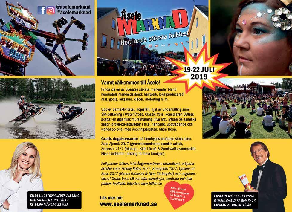 MARKNADER En tradition som är stark i Strömsunds kommun är marknader, där både företagare, artister, folk och krögare sluter upp. Störst är Dundermarknaden i Strömsund, men missa för all del inte Joelmässan i Hammerdal, Fjällsjömarknaden i Backe eller Hotingmarknaden.