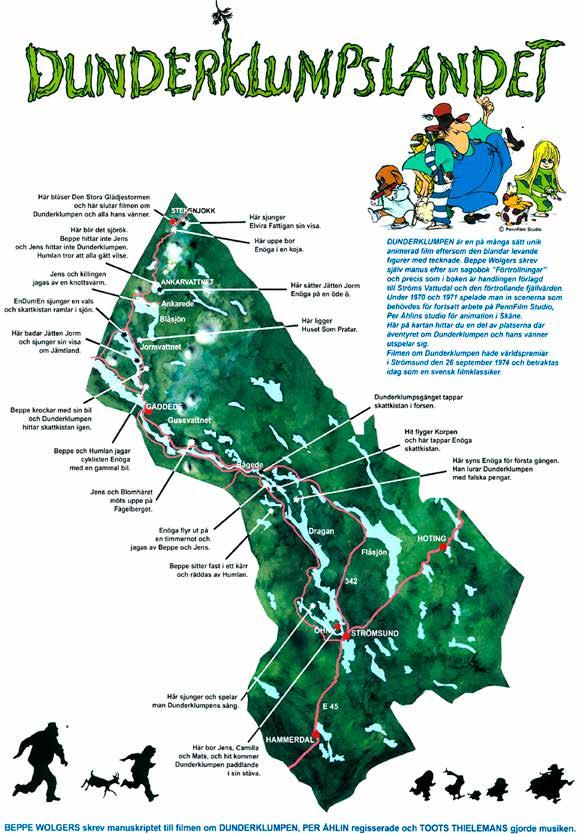 DUNDERKLUMPEN Beppe Wolgers karaktär från filmen 1974 är hela Sveriges favorit-klumpeduns. Strömsund är Dunderklumpens hemmatrakter, och du hittar spår efter honom och hans vänner runt hela kommunen. Exakt var får du veta på exempelvis Turistbyrån.