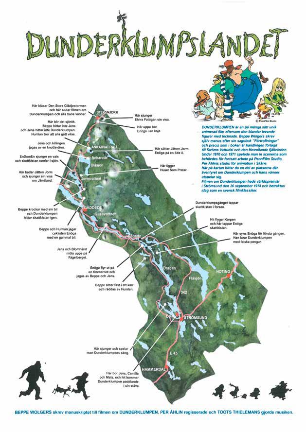 Är man i Strömsund går det inte att bortse från ”Dunderklumpen”, Beppes saga som blev film 1974 och spelades in i Strömsunds kommun. På kommunens hemsida går det att ladda ner en karta och få vägvisning till inspelningsplatserna som sträckte sig längs hela Vattudalen. Vid ingången till hembygdsgården står Jätten Jorm och hälsar välkommen.