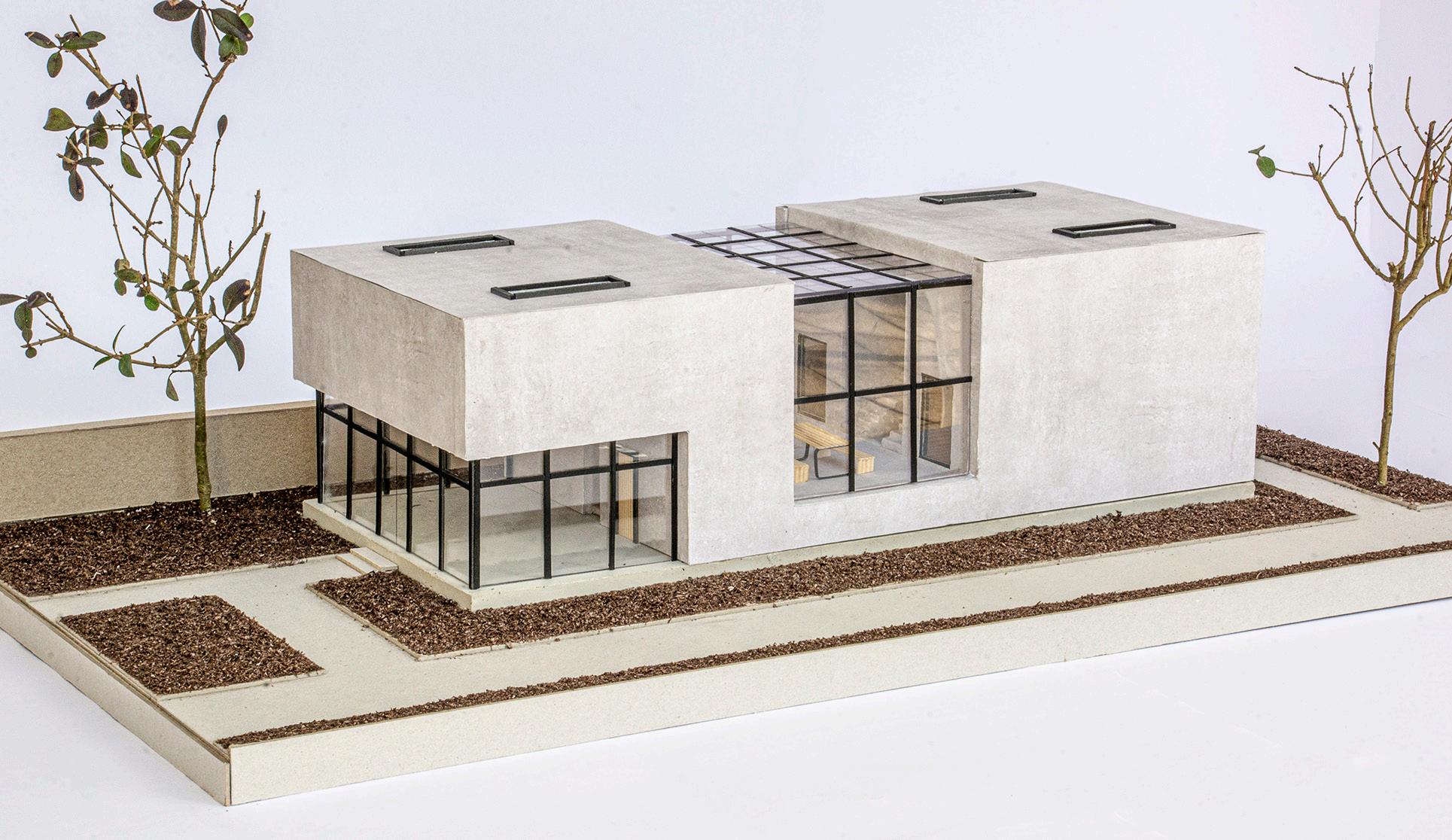 For the Munich Kunstareal, we propose to create accommodation for 3 artists — a paiter, a musician, and a writer. In our design, we envision a unique sculptural building that fulfills the diverse needs of the artists within its interior. The building is divided into three sections, starting with an open area that allows passers-by a glimpse inside, followed by an elevated communal space that brings the artists together, and finally, a more enclosed area. Between these sections, there are functions such as stairwells or a kitchen. The entire building is characterized by a visual axis, stretching from the entrance to the final room. To enhance acoustics in the music room, we will clad it with wood and ensure enough natural light for all the rooms through generous openings in the facade.