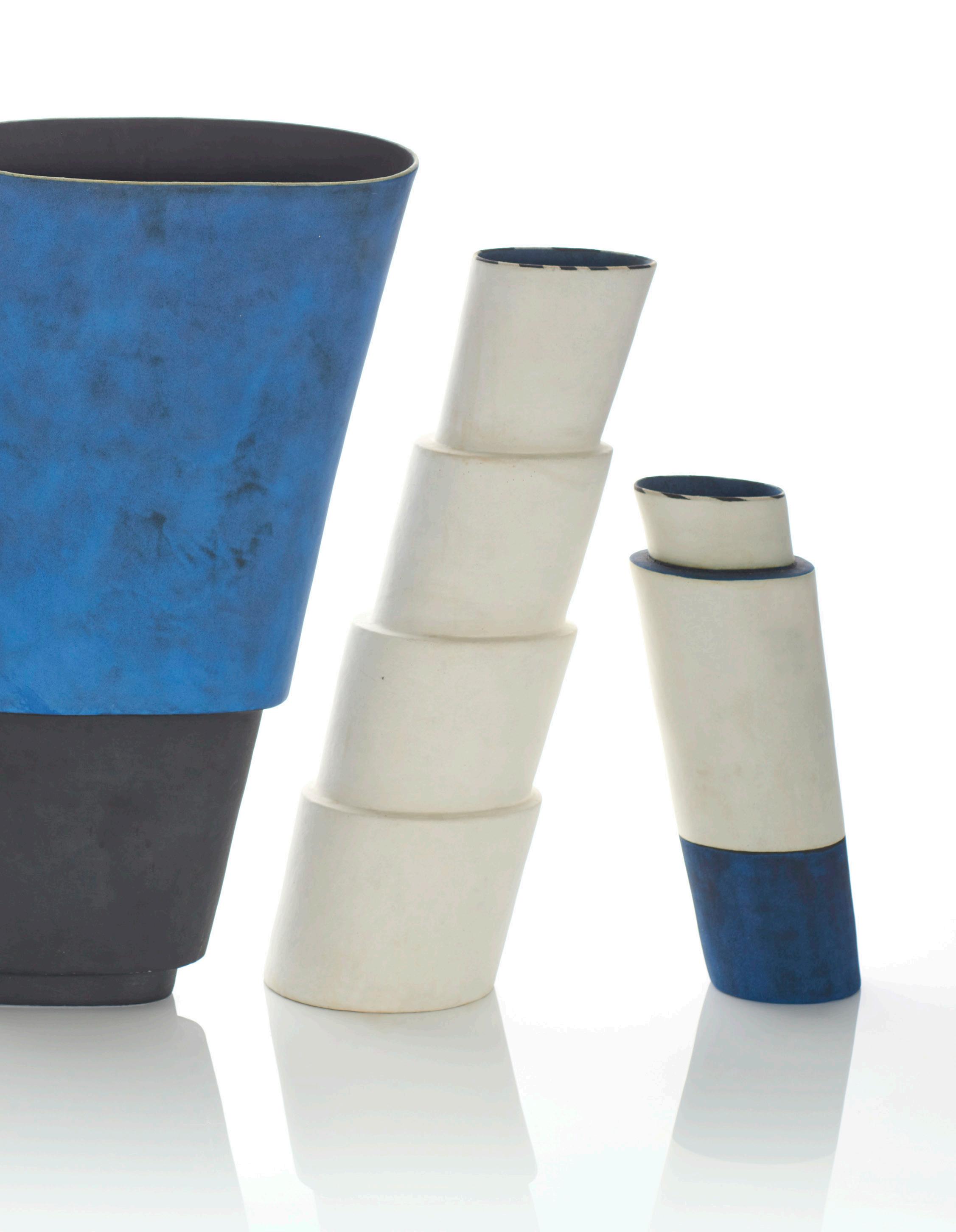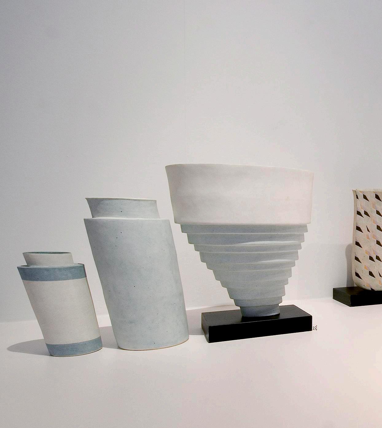 Some works have original firing cracks, which are inherent in the nature of construction and often the result of the multi-firing process favored by Elizabeth Fritsch.