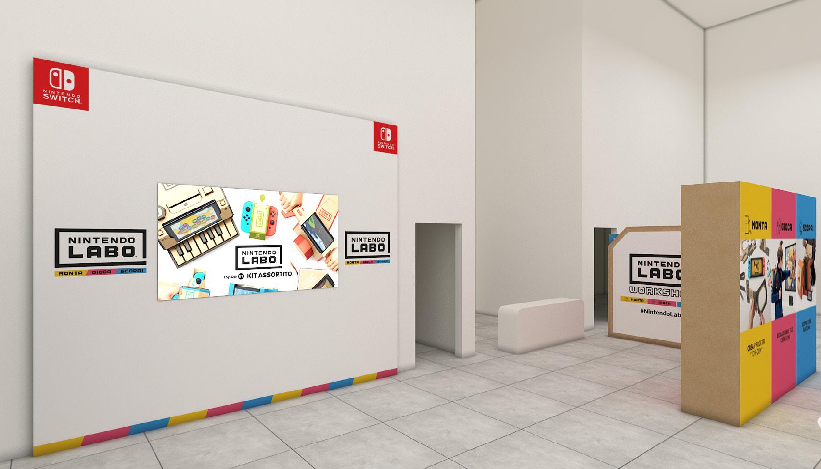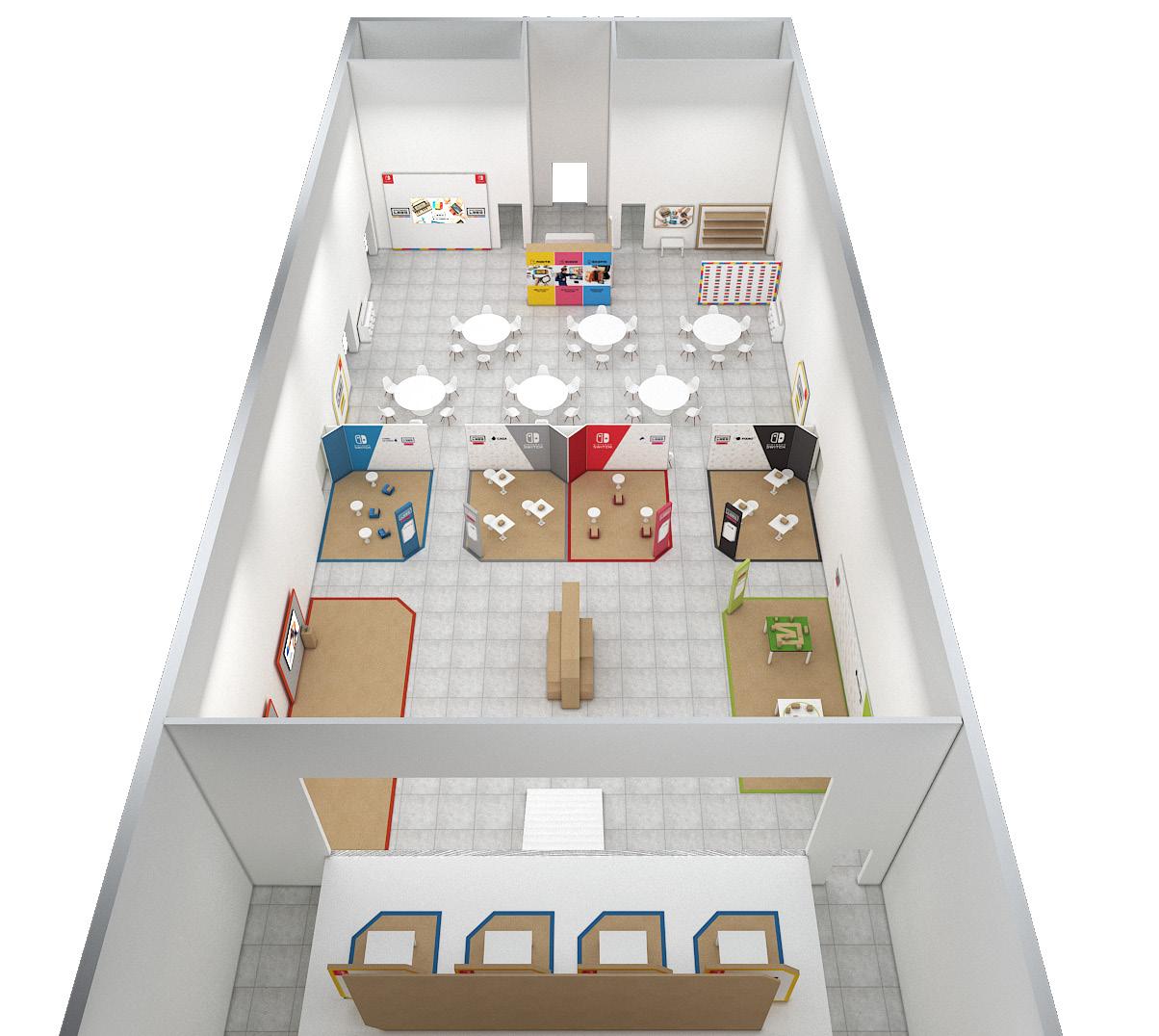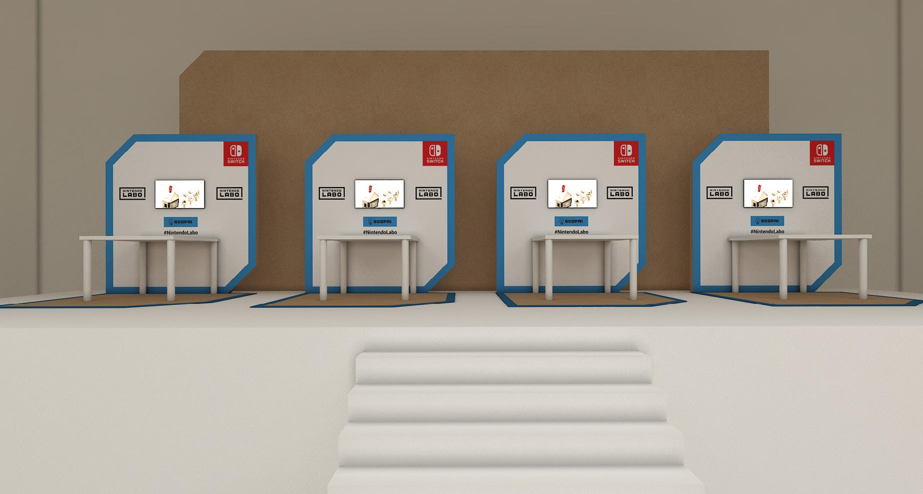 Nintendo Labo, the new gaming and toy construction platform developed by Nintendo, created as an extension for the Nintendo Switch console. The Workshop was designed as a preview of the platform for journalists and their kids, in an event lasting three days, in which they were introduced to the LABO world, were given the opportunity to create their own toycons and play with them. By request of Nintendo Europe, the location was to be divided in six sections that had to create a linear flux: reception, introduction, make area, play area, discover area, and interview and photo opportunity salon.