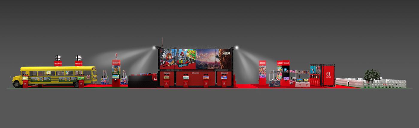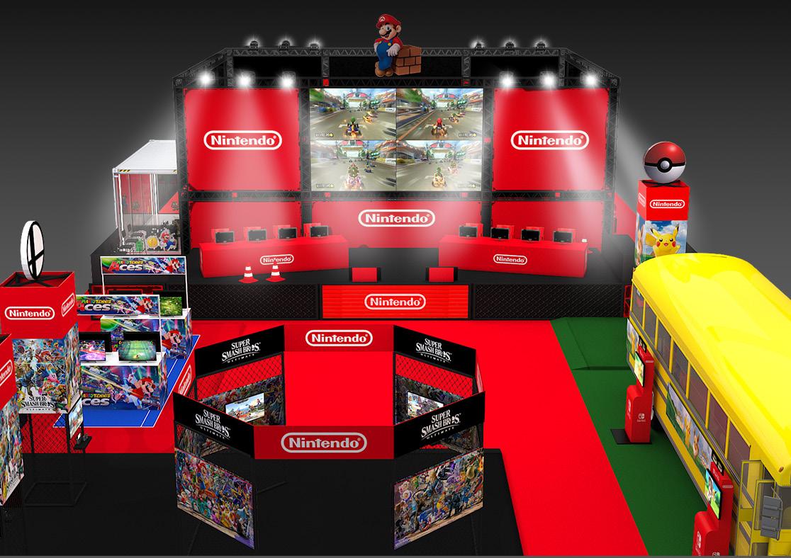 In order to create a ‘plaza’, the areas dedicated to Pokemon, Super Smash Bros and Mario Aces were located in the perimeter front stage.