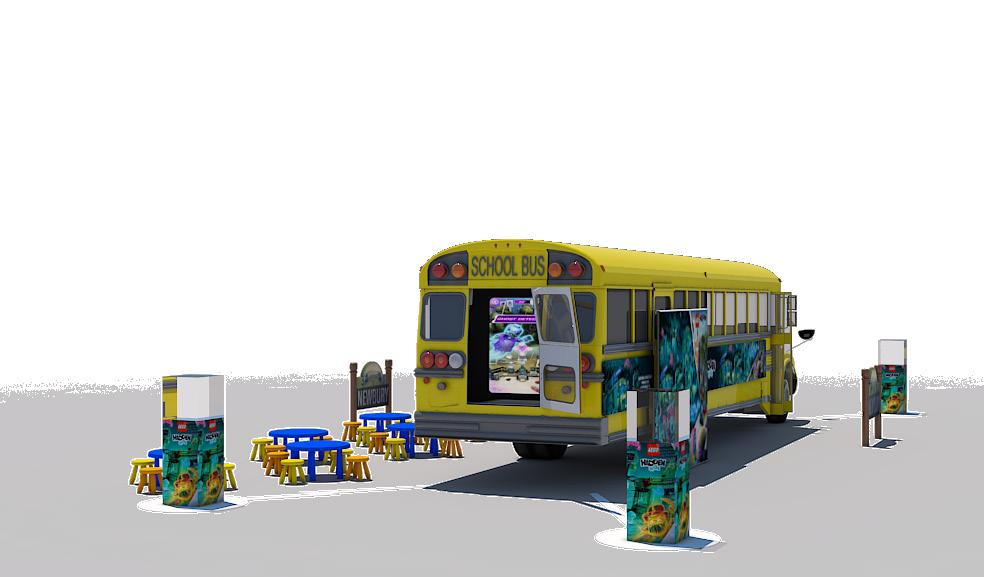 For the activation and on-field promotion of the game, two different solutions have been developed: an Italian and European road tour with school buses that recreate one of the playsets of the new game, and a tour around Italian shopping centres with an area created specifically for trying out the different sets. Both proposals consist of a traditional LEGO institutional area, a display area with the new playsets and a test area for the new augmented reality technology.
