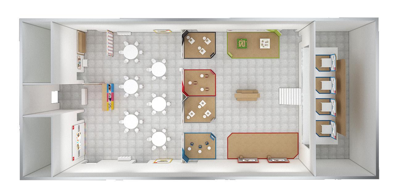Surrounding the other three sides of the central column it is possible to find the VIP area, an area dedicated to Interactive Display Units (IDUs) and the gamer section.