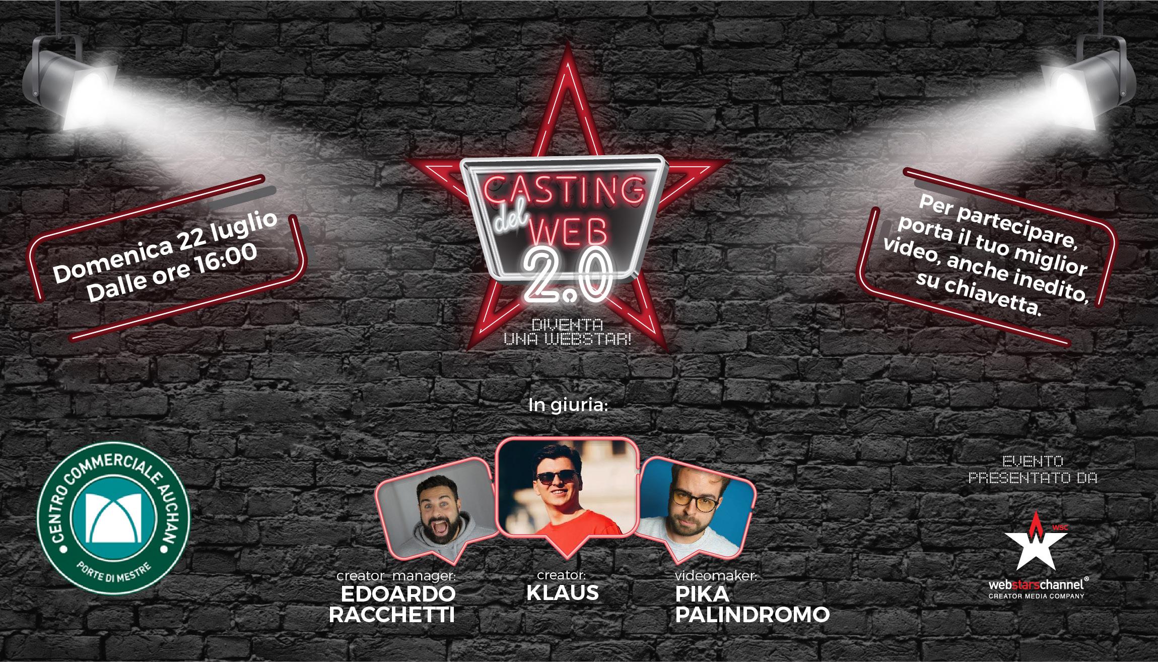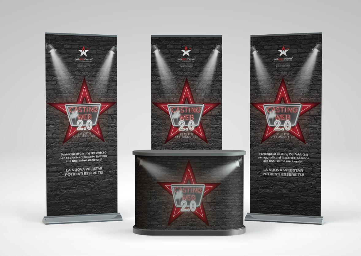 ‘Casting del Web’ is a roadshow held in shopping centres across Italy, aimed at choosing the next star of the web. Web Stars Channel, as a creator media company, offers the participants the possibility of winning a one-year contract with them, in which they are given access to creator managers, video makers and all other available tools and professionals for them to give a boost to their online career. The development of the logo, key visuals, Instagram and Facebook posts and all other graphic material was based on the need of creating a visually attractive output, which had to reflect the identity of the agency, as well as the objective of the tour.