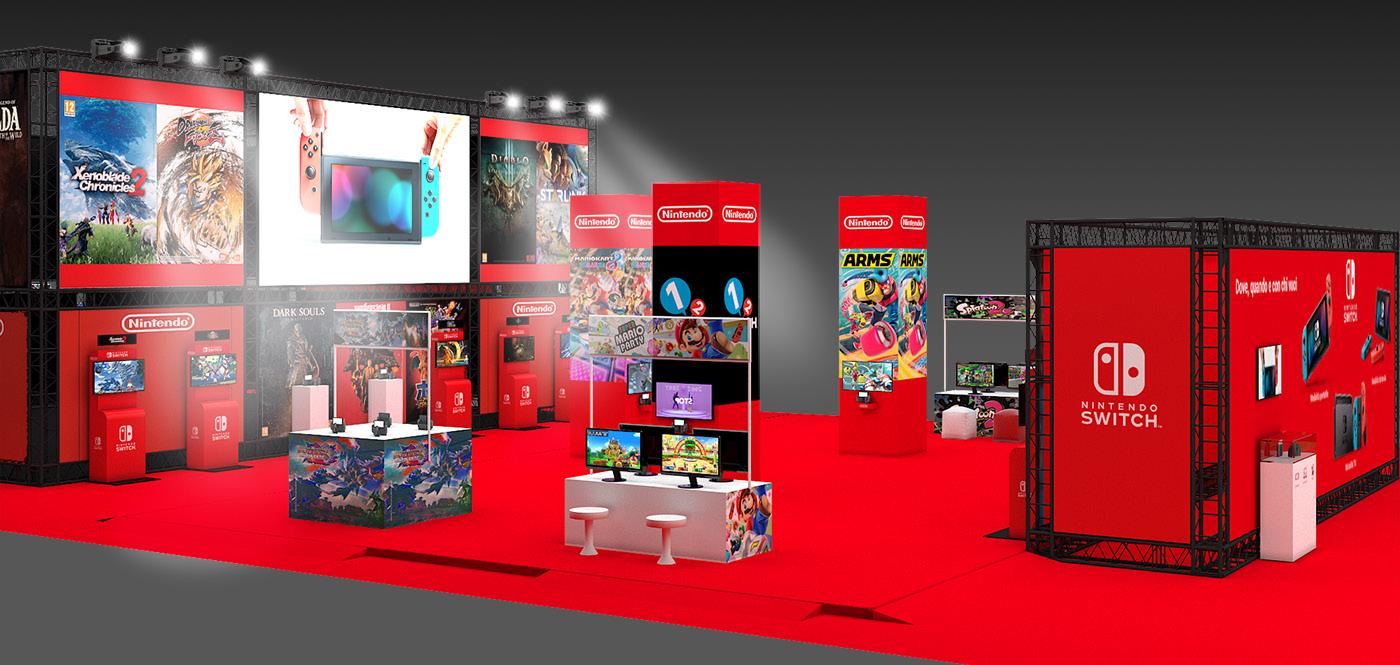 Milan Games Week is the most important videogaming fair in Italy, held in Milan, aimed at gamers and videogaming lovers. For the 2018 edition, Nintendo asked to develop a 1000m2 stand, giving full creative and production freedom.