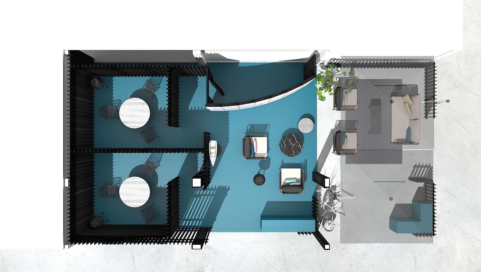 All the proposals foresaw the division of the space into three different areas: reception, offices and outdoors.