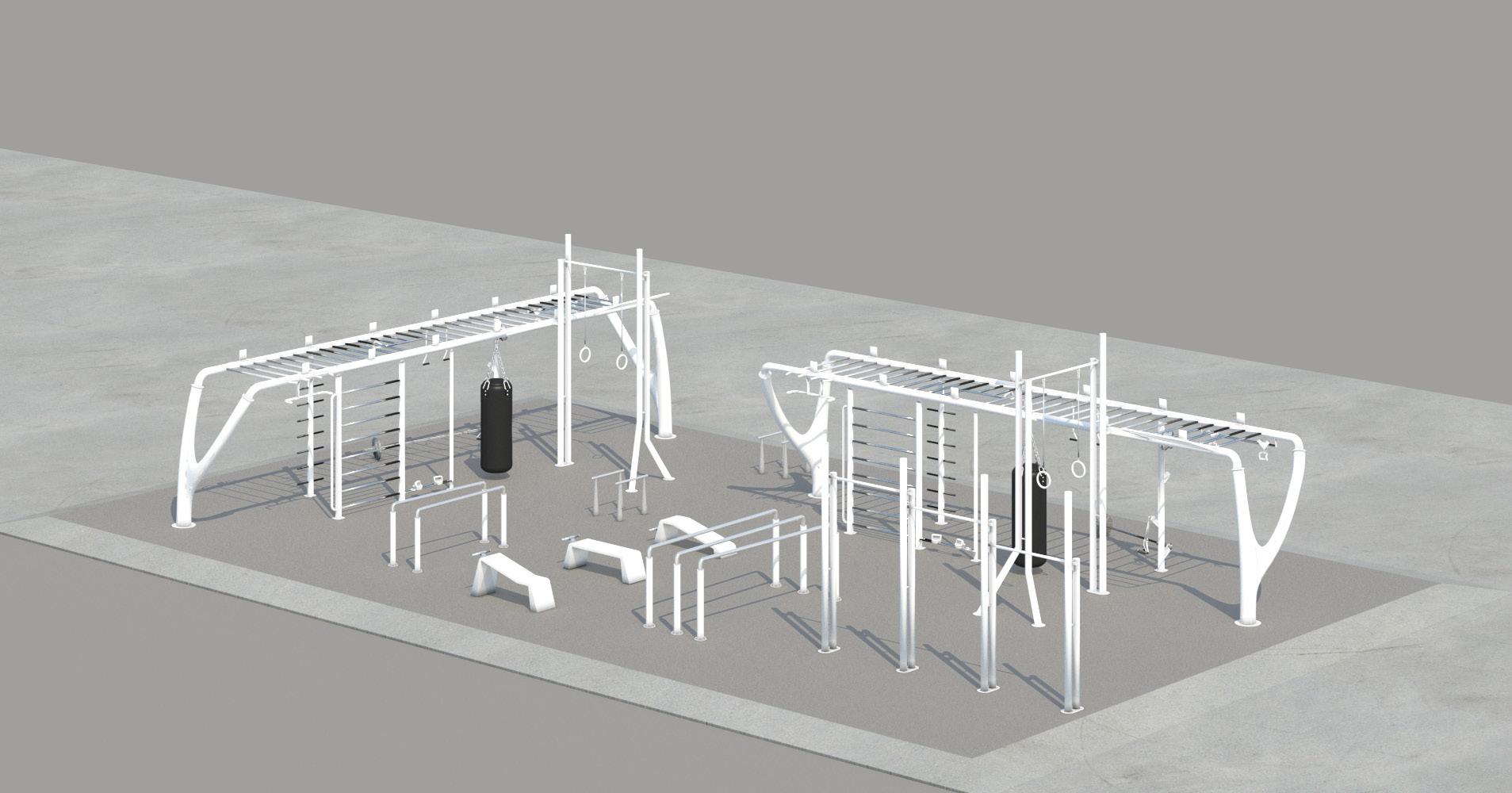 The project focused on the creation of a completely free outdoor gym, with specific areas for warm-up (with benches, parallel bars and push up bars), calisthenics (with unparalleled bars, pull-up stations and vertical poles) and training (with MyBeast structures, a Leopard tree and a wellness stone). Additionally, the project proposed the creation of a locker/storage unit for trainers and trainees, as well as a tensile structure to create shadow in the already existing relax area.