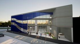 Perspectiva lateral facahda de acceso - Museo biogeográfico